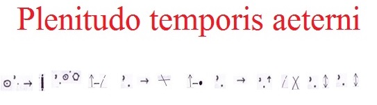 In addition, it must be said that my philosophical symbolic language does not have a phonological system. As a result, it can only be written and never be spoken. Each piece of writing can be commented, but any comment is not intended as a feedback to that piece of writing but as a thought that must be considered separately. The fact that this symbolic language is never used in everyday life communication can be realised in the absence of interrogative forms along with the exclusive presence of the third singular and plural persons paired with impersonal expressions. Incidentally, the personal pronoun “I” is symbolically expressed as “the agent part of the Ego”. In light of this, following the literal symbolic translation, “I” is a third person subject. Due to the emphasis on the categorical reject of violence, the personal pronoun “I” is very often used with the verbal tense “Plenitudo temporis aeterni”, so as to highlight the hypercategorical refusal of violence that goes beyond the earthly world because it challenges the neverending time before and after life :