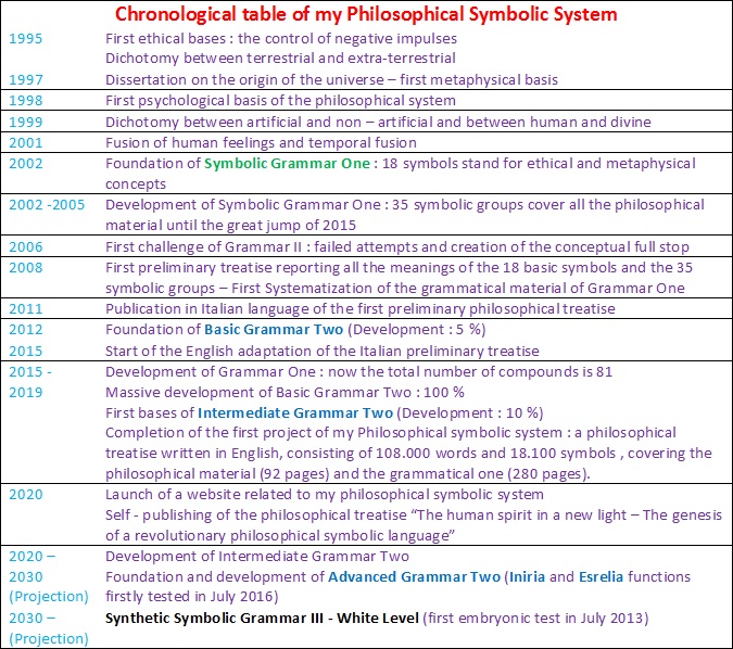 Chronological table of the philosophical system The following table displays the main achievements characterizing 25 years of philosophical activity : Share this: Click to share on X (Opens in new window) X Click to share on Facebook (Opens in new window) Facebook Like Loading...